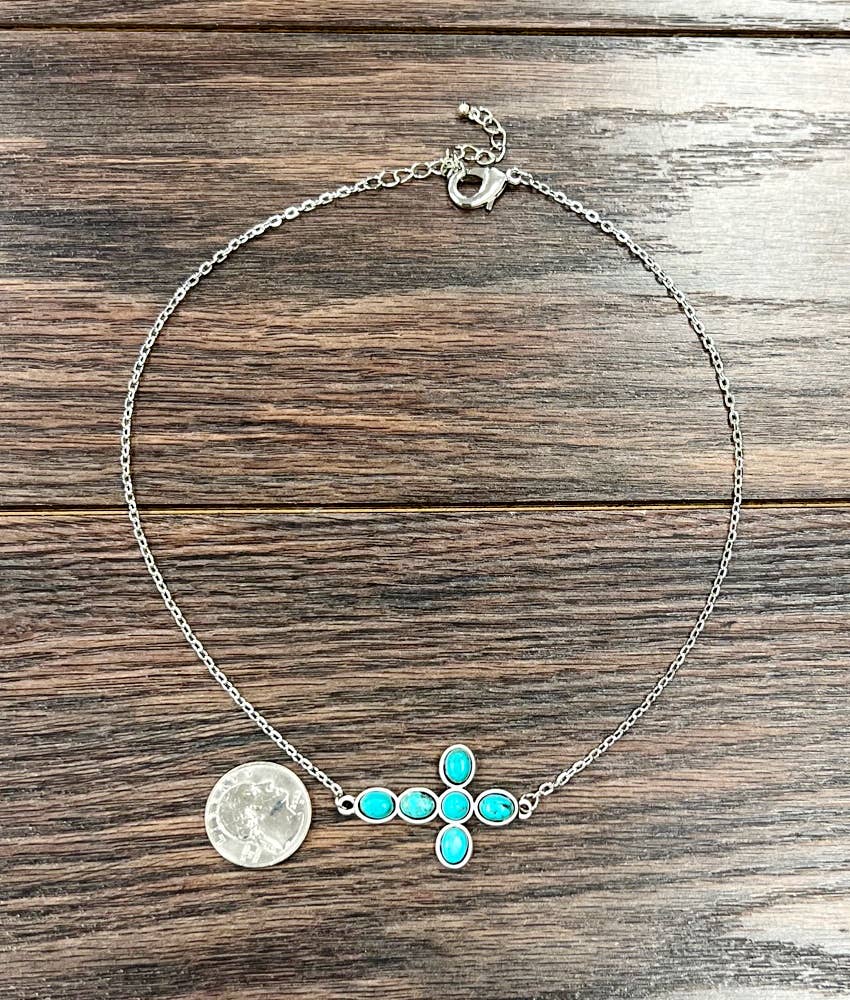 16" to 19" Long, Sideway Cross Turquoise Necklace